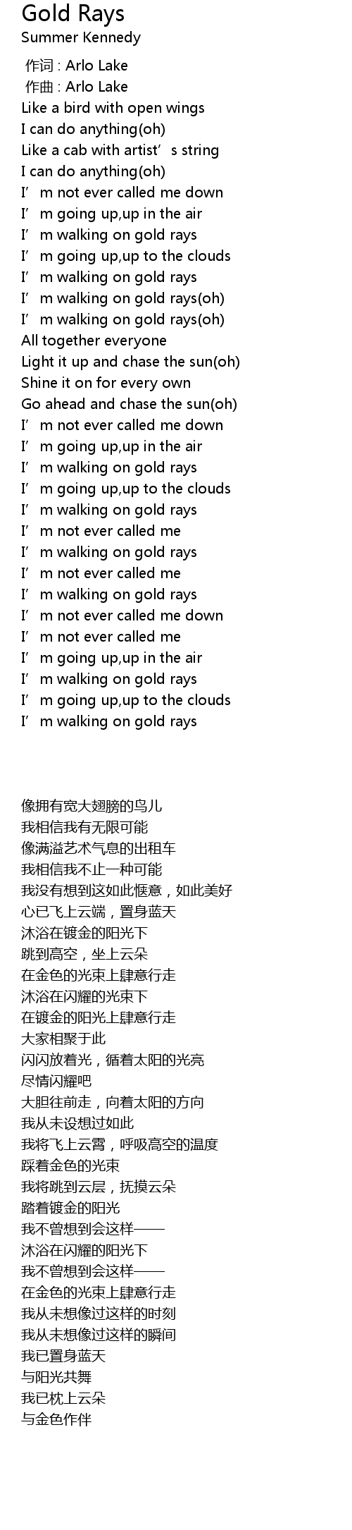 | [00:53.54] | I’m walking on gold rays |