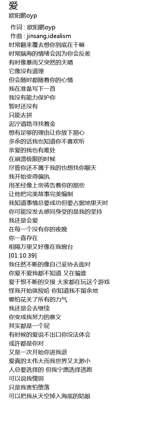 | [00:00.000] | zuò cí : ōu yáng péng oyp |