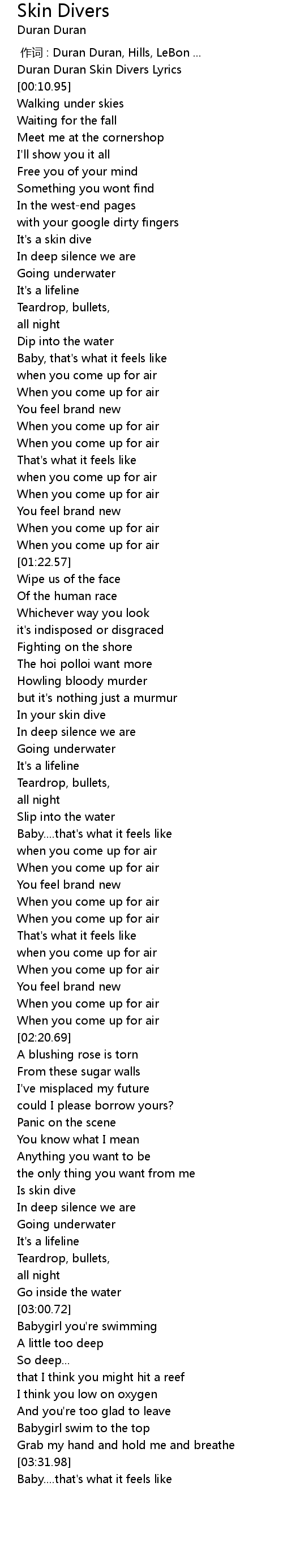 | [00:02.35] | Duran Duran Skin Divers Lyrics |
