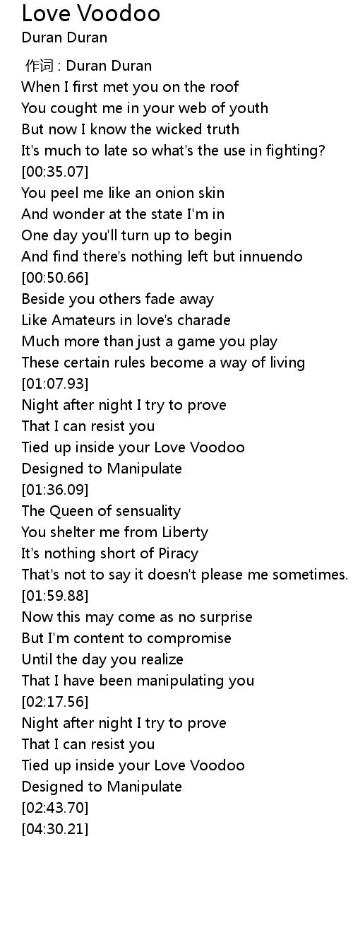 | [02:31.91] | Tied up inside your Love Voodoo |