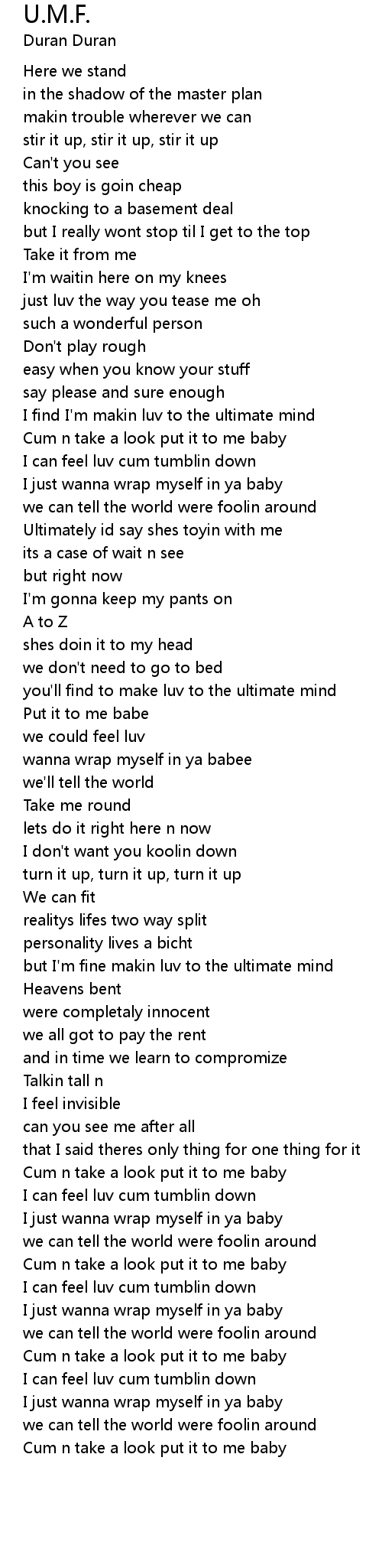 but I'm fine makin luv to the ultimate mind |