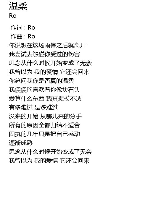 | [00:00.000] | 作词 : Ro |
