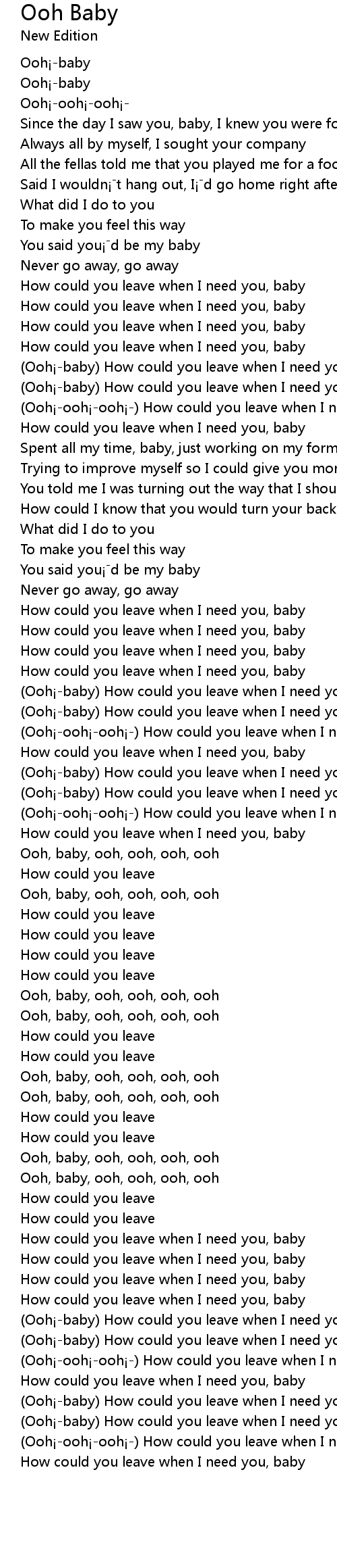 | Ooh ooh ooh How could you leave when I need you, baby | |