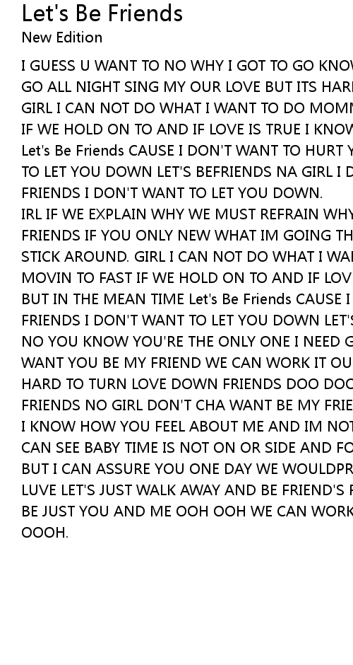 FRIENDS I DON'T WANT TO LET YOU DOWN LET'S BEFRIENDS I DON'T WANT TO HURT YOU |