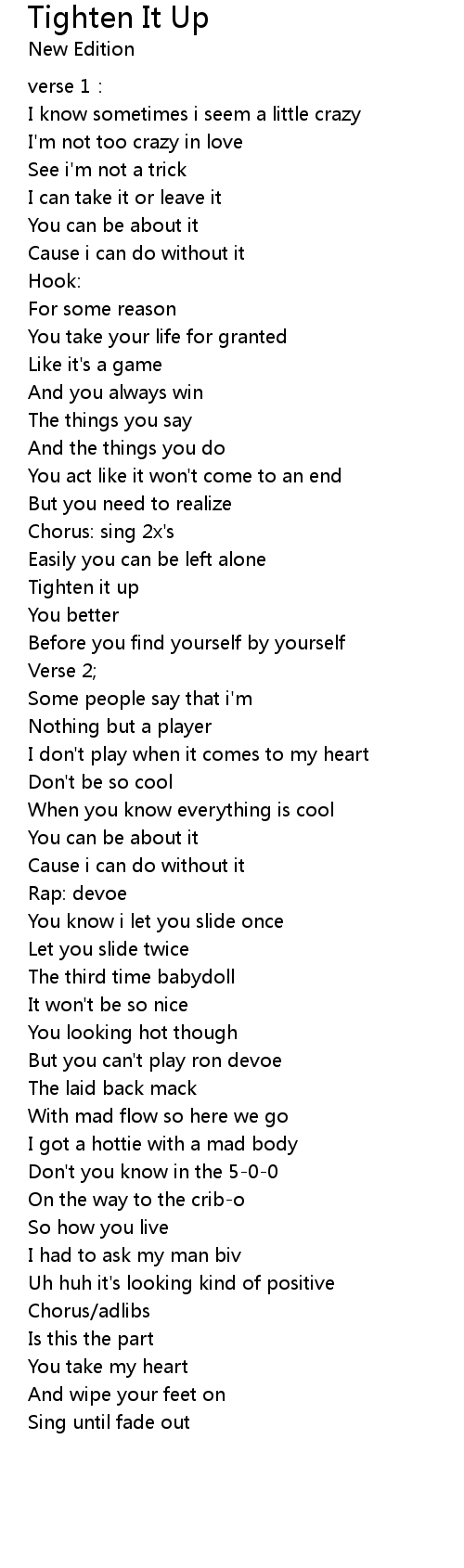 | 歌曲 | Tighten It Up |