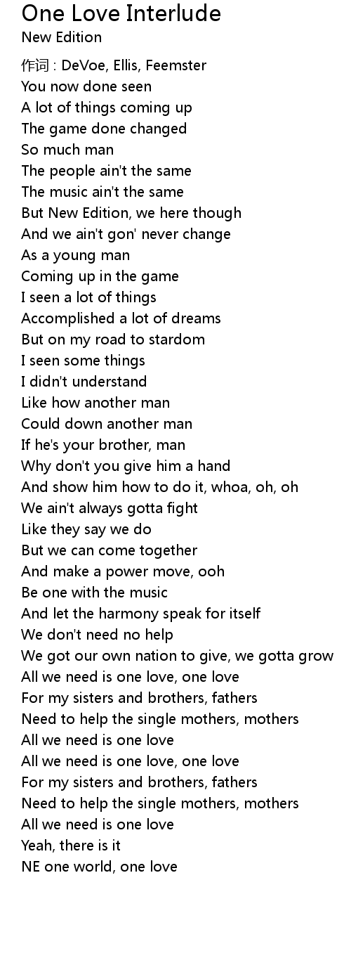 | All we need is one love, one love | |