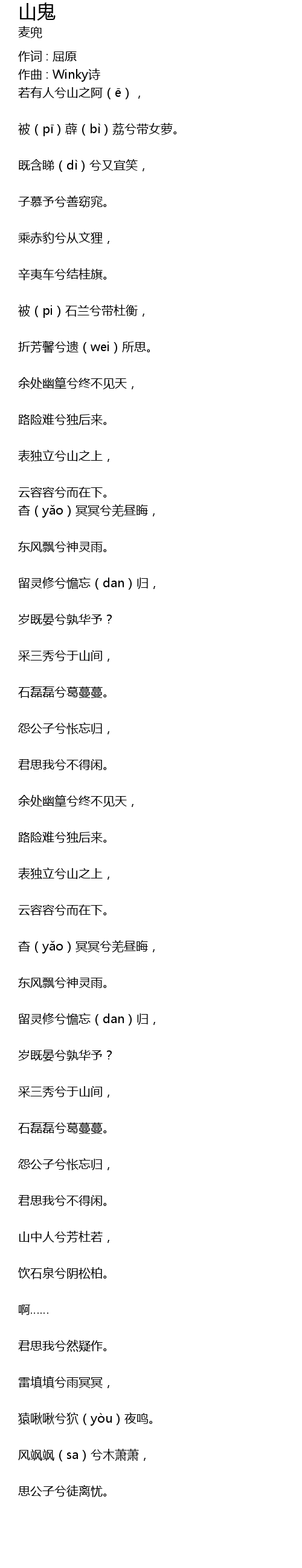 | 作词 : 屈原 | |