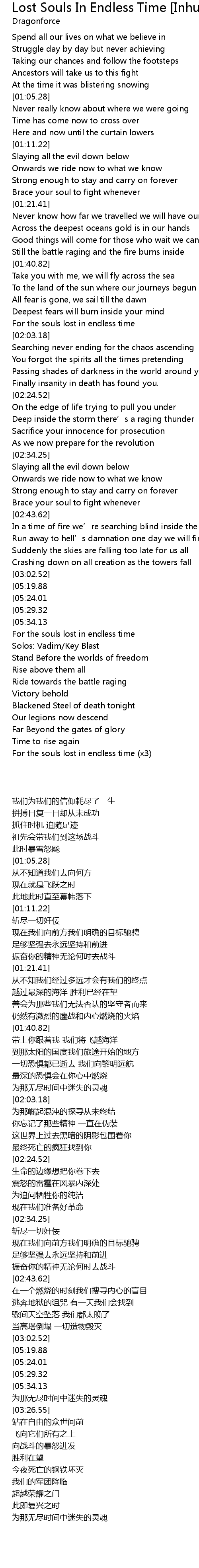 | [05:57.36] | For the souls lost in endless time x3 |