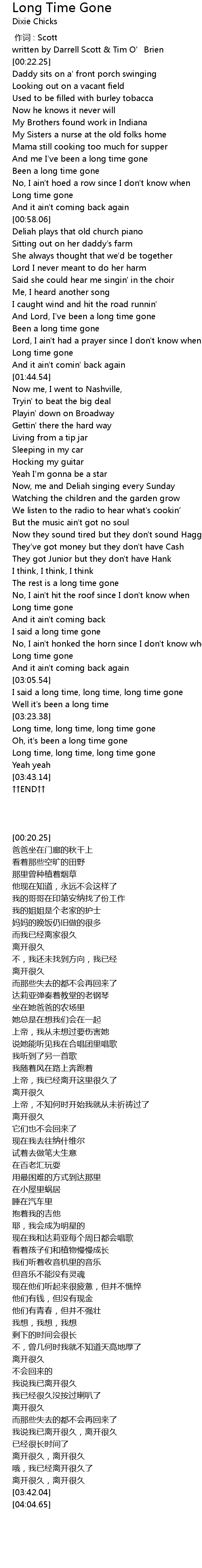 | [03:25.89] | Long time, long time, long time gone |