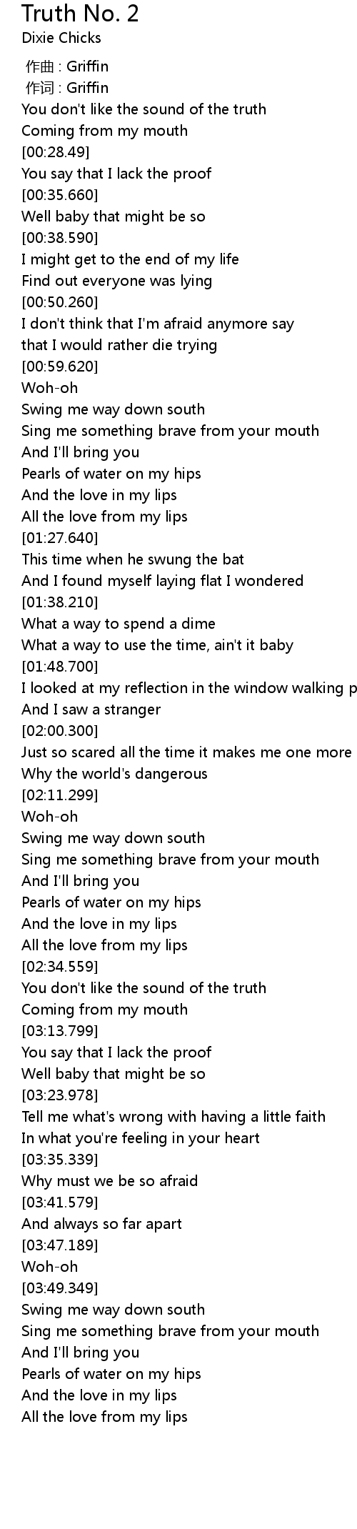 | [00:22.119] | You don't like the sound of the truth |