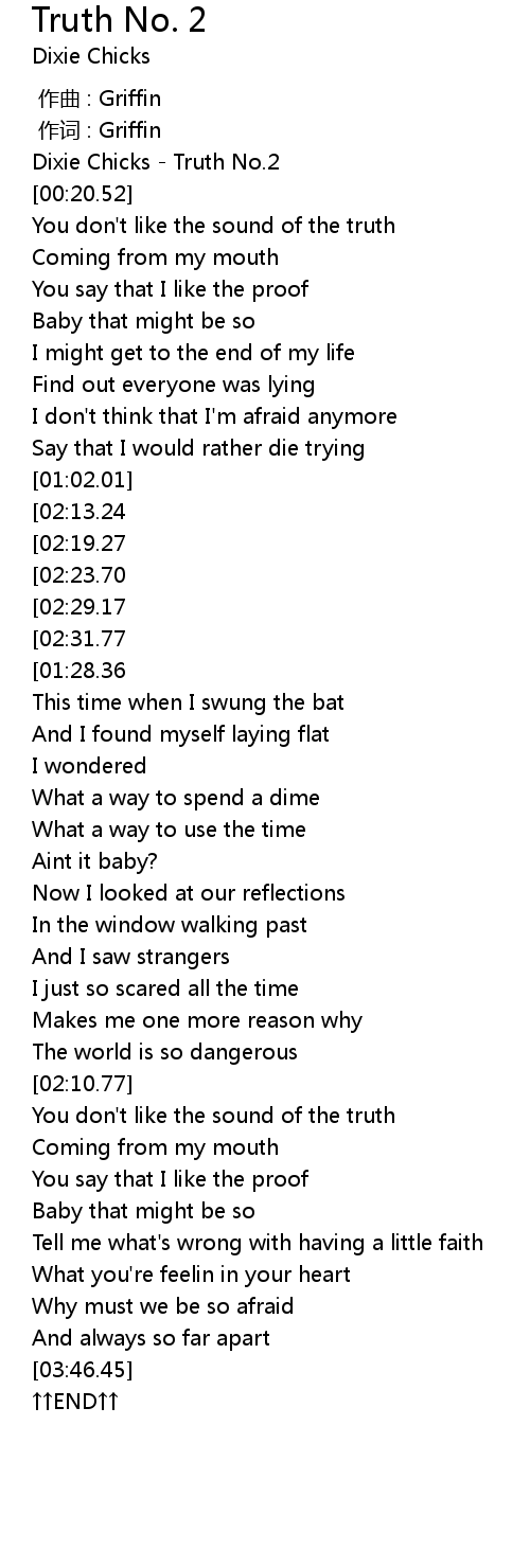 | [00:00.00] | Dixie Chicks - Truth No.2 |
