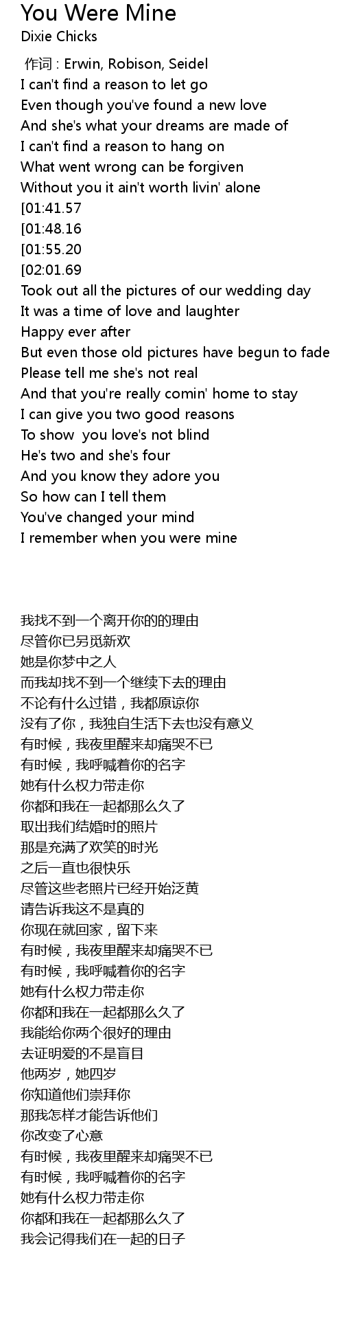| [02:58.12][02:01.69][01:03.88] | When for so long you were mine |