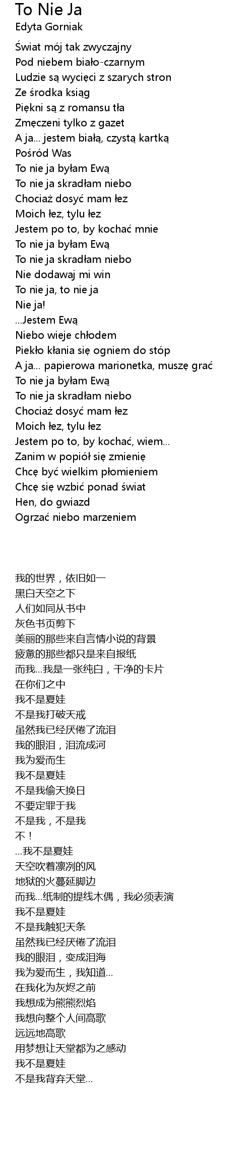 | 歌曲 | To Nie Ja |