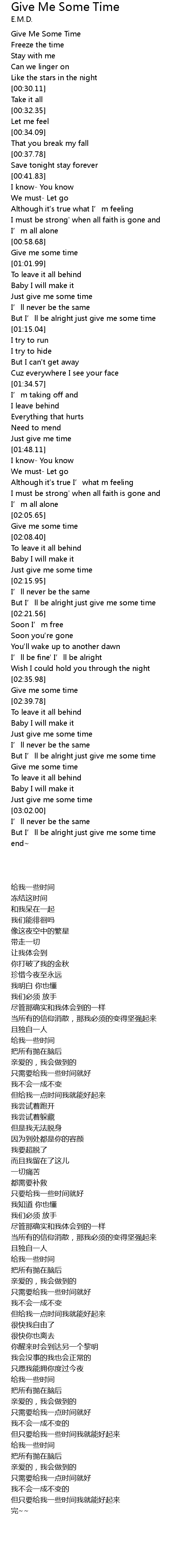 | [02:52.95] | 给我一些时间 |