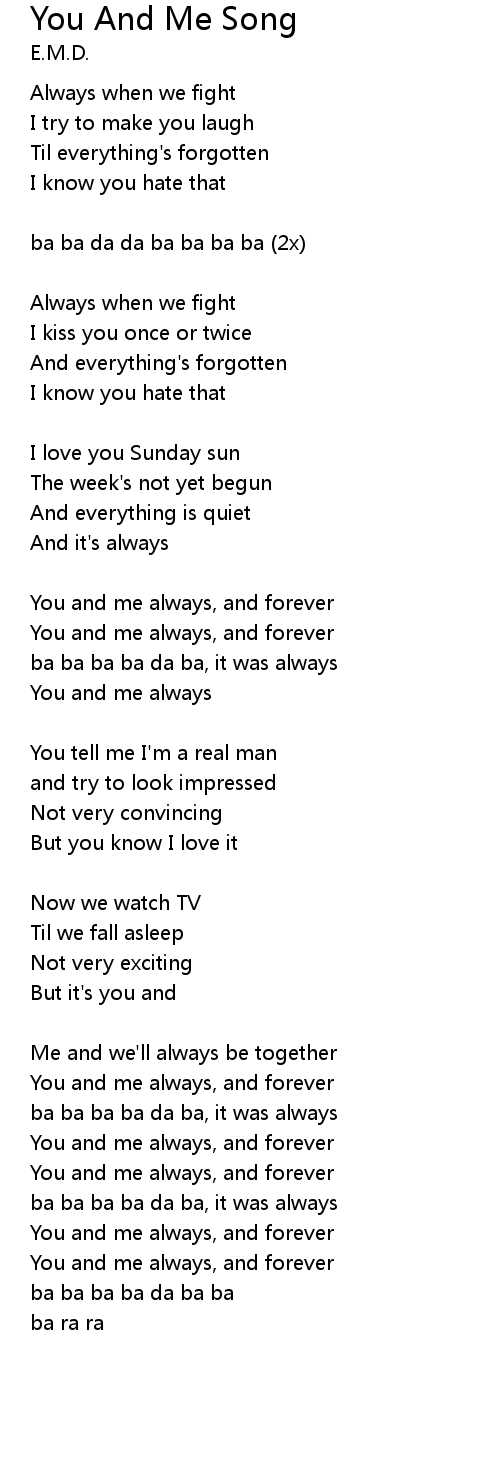| You and me always | |