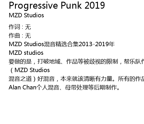 | (MZD Studios 混音之道)好混音,本来就该清晰有力量。所有的作品均为Jerome Alan Chan个人混音、母带处理等后期制作。 |