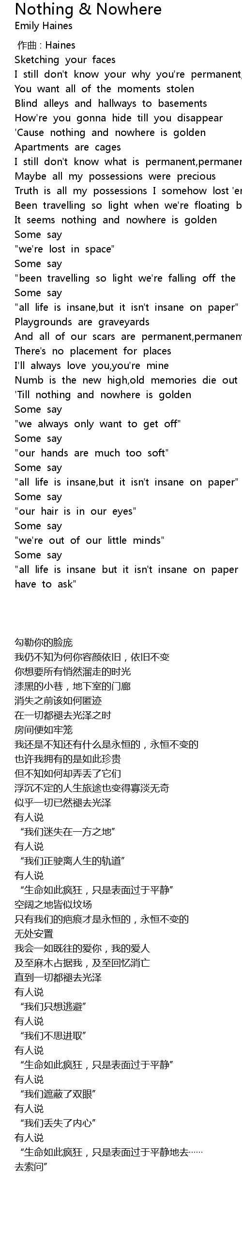 | [00:40.451] | 'Cause nothing and nowhere is golden |