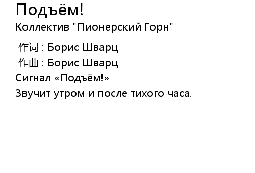 | [00:24.576] | Звучит утром и после тихого часа. |