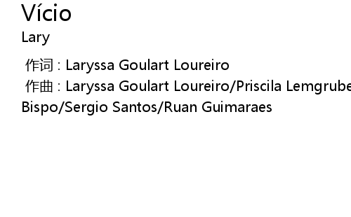 | [00:00.000] | 作曲 : Laryssa Goulart Loureiro/Priscila Lemgruber/Pablo Bispo/Sergio Santos/Ruan Guimaraes |