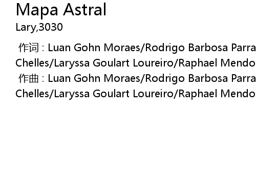 | [00:00.000] | 作曲 : Luan Gohn Moraes/Rodrigo Barbosa Parracho/Bruno Borges Chelles/Laryssa Goulart Loureiro/Raphael Mendonca Paulino da Silva |