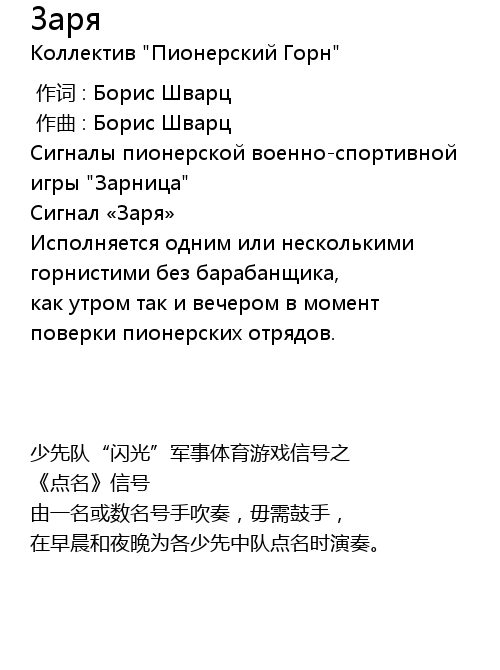 | [00:00.30] | Сигналы пионерской военно-спортивной игры "Зарница" |