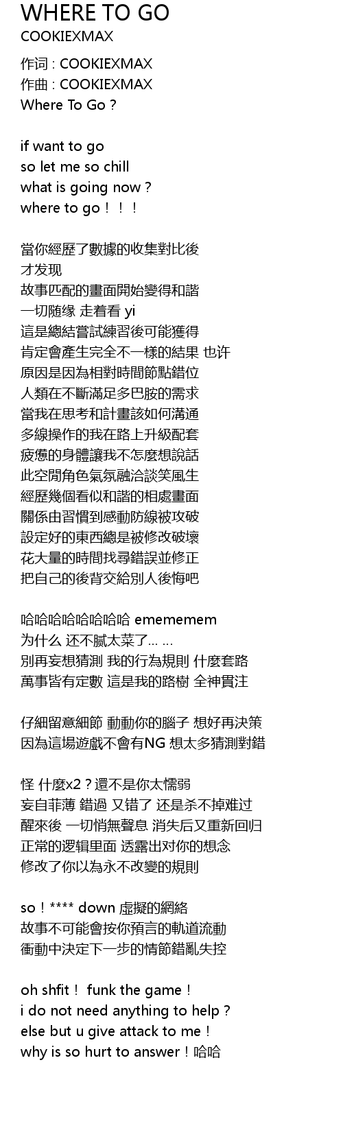 | 歌曲 | WHERE TO GO |