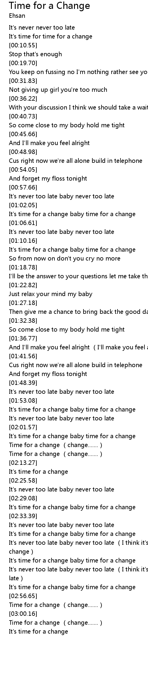 | [03:01.73] | Time for a change (change.......) |