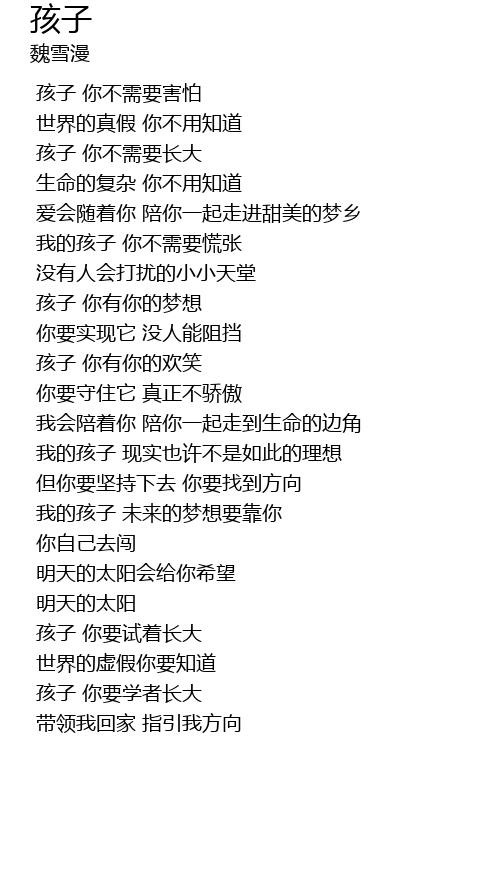 | [00:24.17] | 孩子 你不需要害怕 |