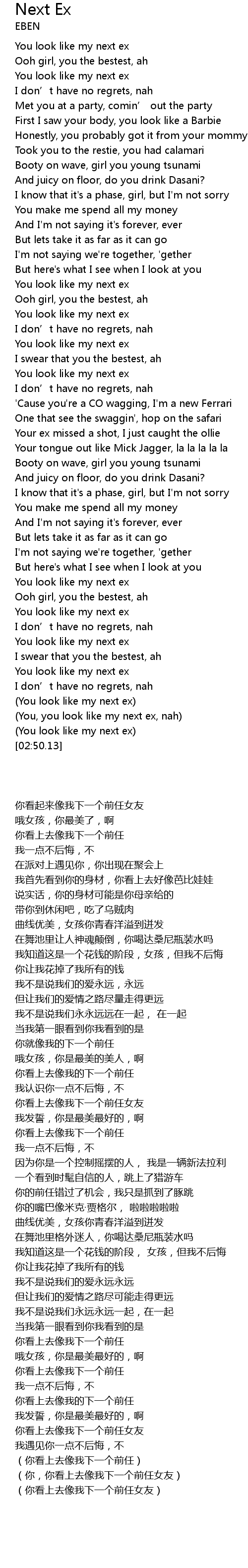 | [02:43.49] | (You, you look like my next ex, nah) |