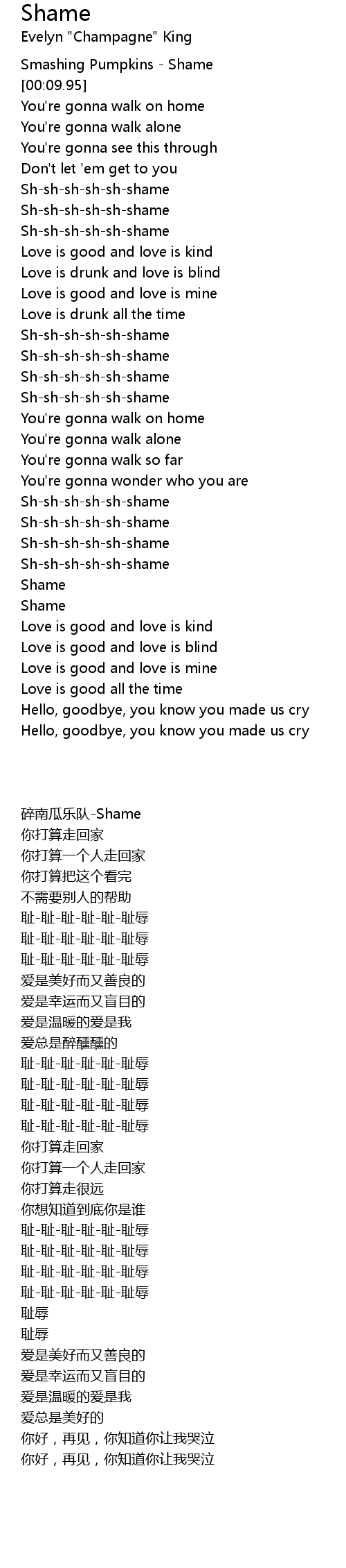 Shame 歌词