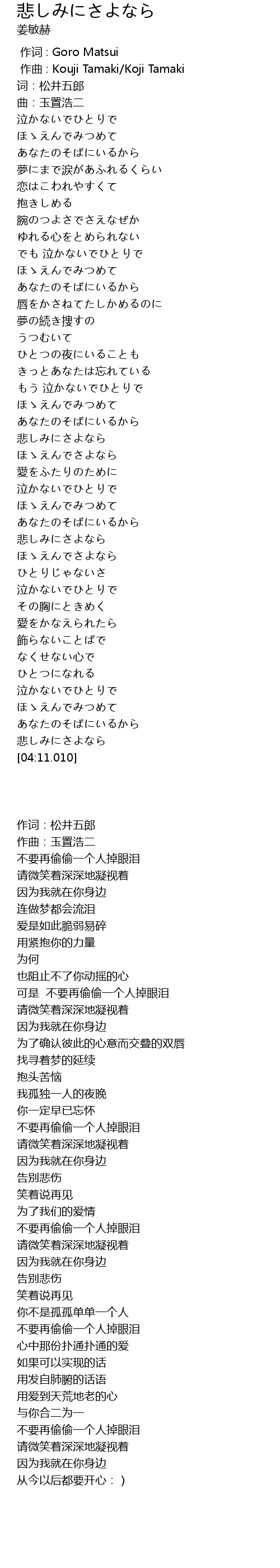 | [00:00.000] | 作词 : Goro Matsui |