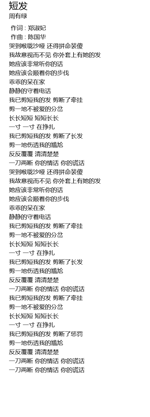 | [02:56.356] | 我已剪短我的发 剪断了牵挂 |