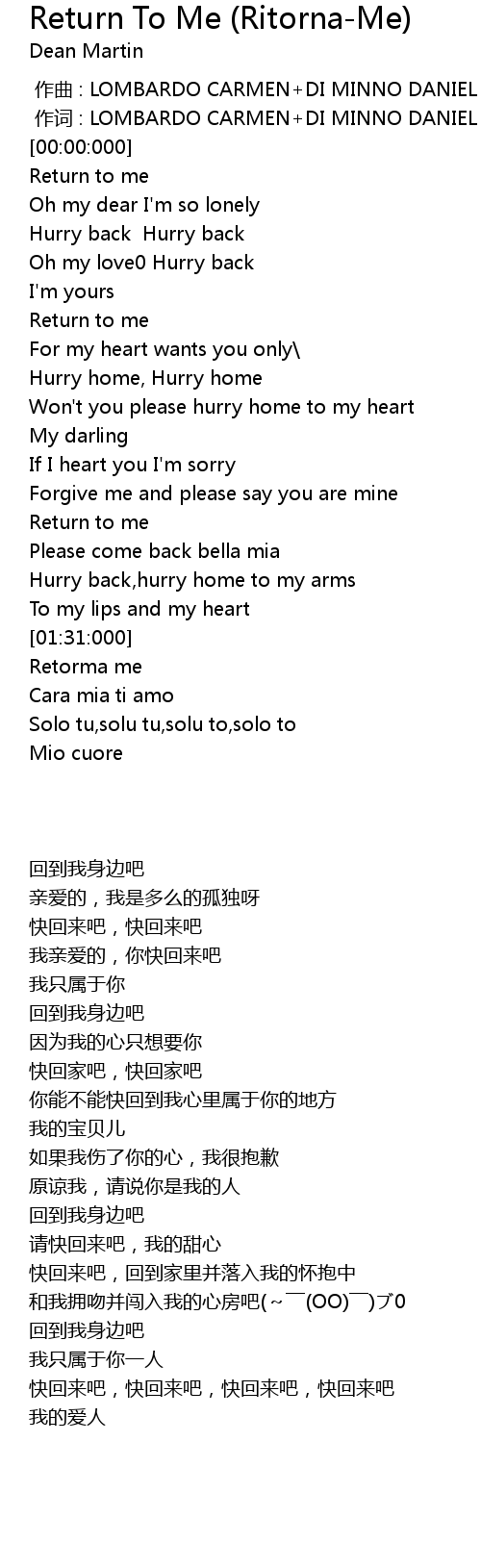 | 歌曲 | Return To Me (Ritorna-Me) |
