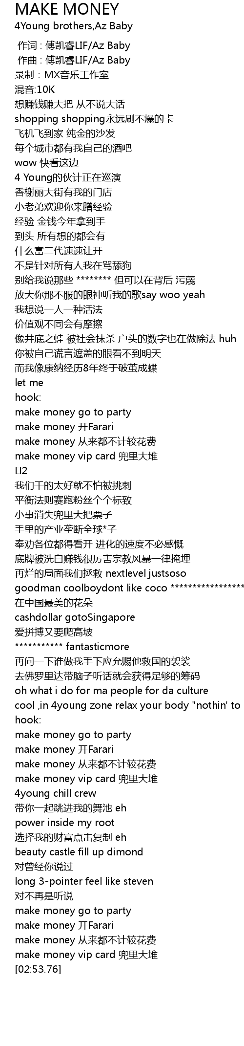 | [02:43.74] | make money kai Farari |