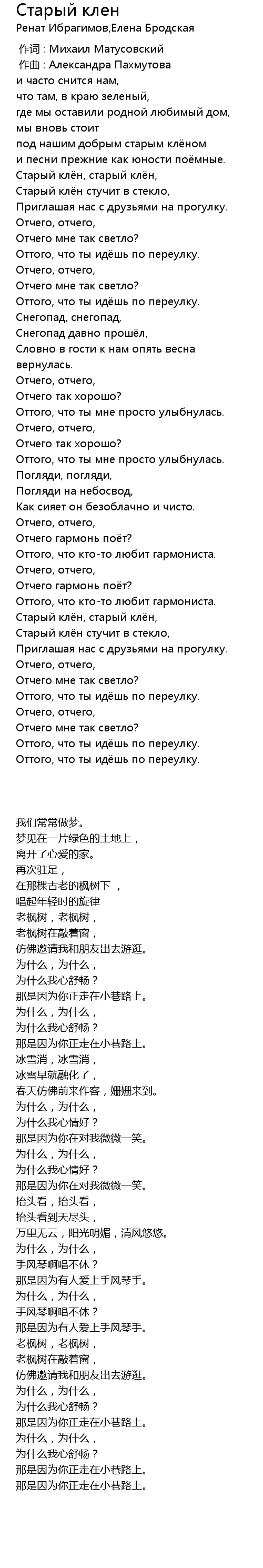 | 歌曲 | Старый клен |