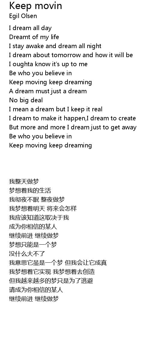 Keep moving keep dreaming |