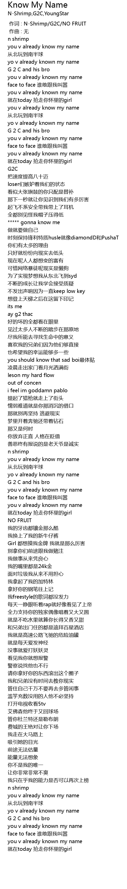| [00:00.000] | 作词 : N-Shrimp/G2C/NO FRUIT |