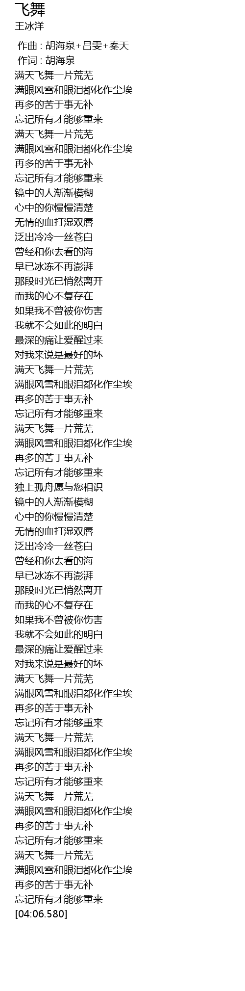 | [03:46.980] | mǎn yǎn fēng xuě hé yǎn lèi dōu huà zuò chén āi |