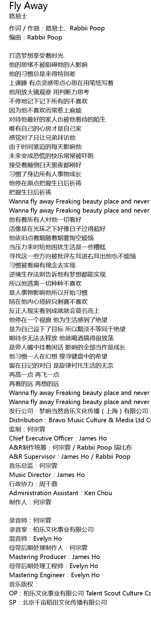| 作词 / 作曲:路易士、Rabbii Poop | |
