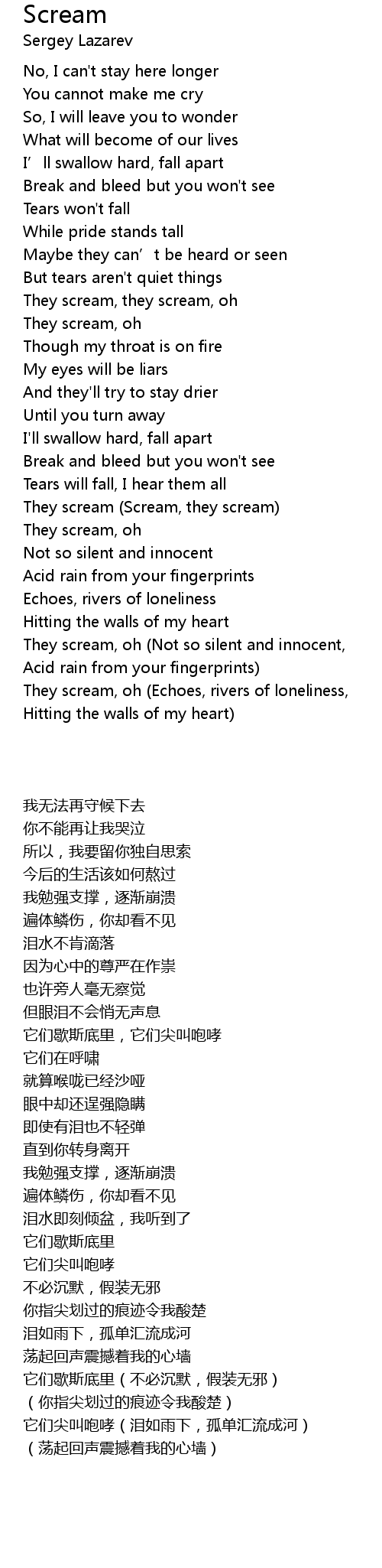 | [02:45.75] | They scream, oh (Echoes, rivers of loneliness, |