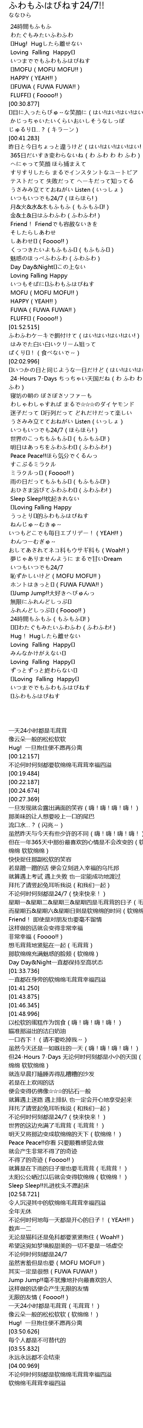 | [03:42.479] | 24時間もふもふ(もふもふ!) |