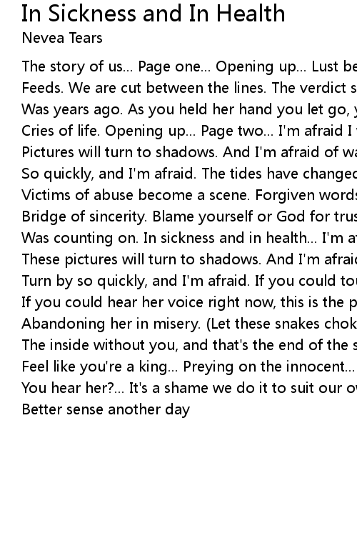 Was counting on. In sickness and in health... I'm afraid I will lose her and