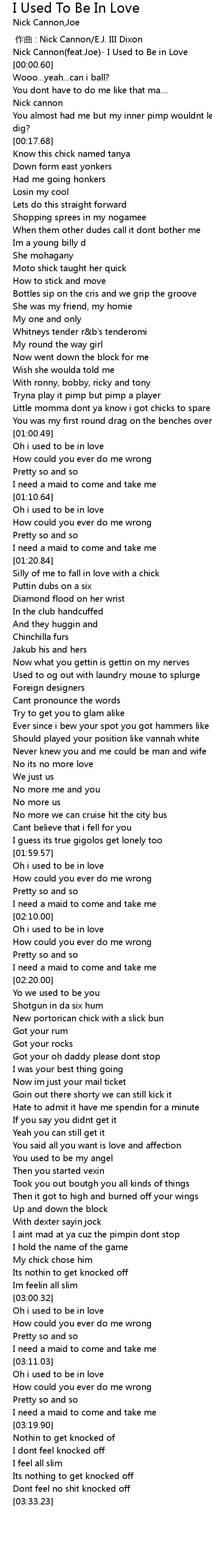| [00:00.30] | Nick Cannon(feat.Joe)- I Used to Be in Love |
