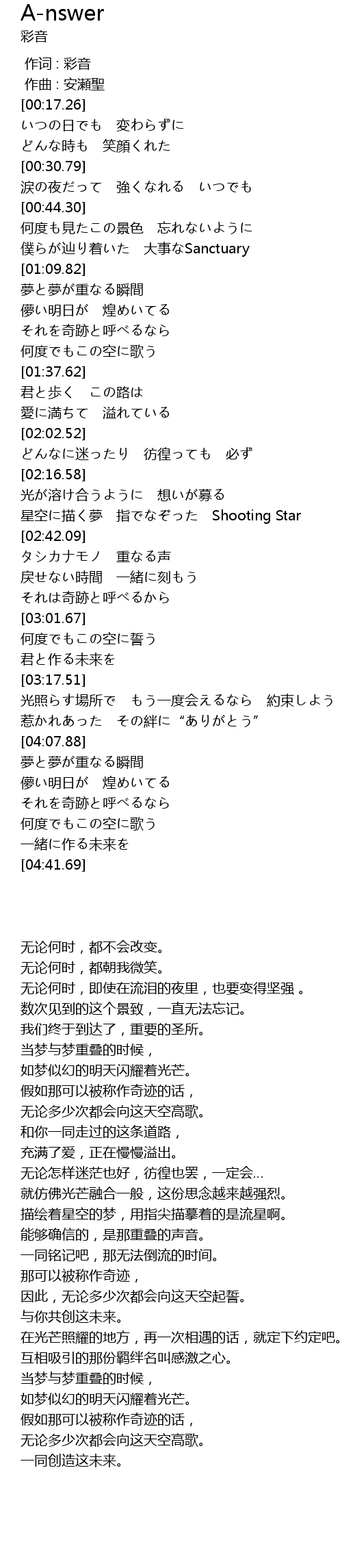 | [04:27.26] | 何度でもこの空に歌う |