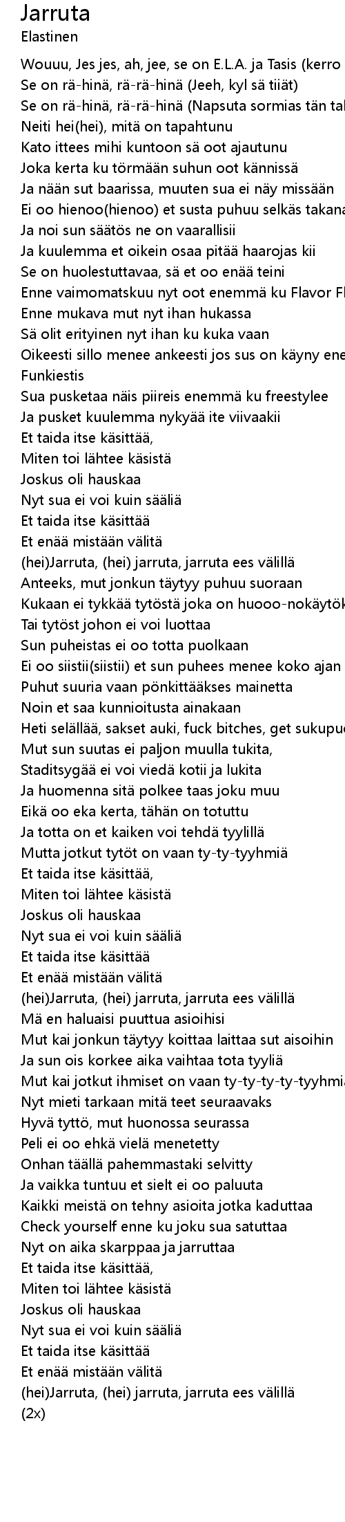 | Wouuu, Jes jes, ah, jee, se on E.L.A. ja Tasis (kerro niille) | |