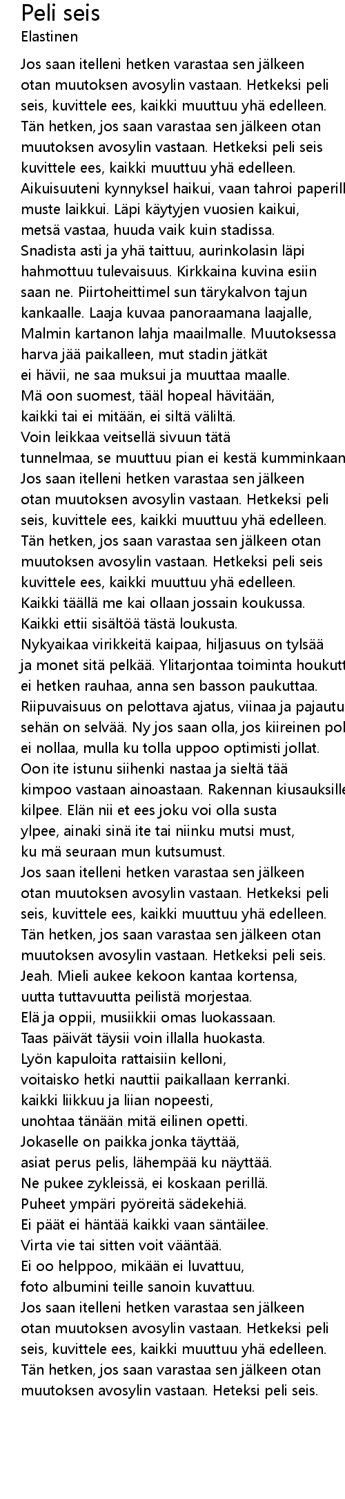 | voitaisko hetki nauttii paikallaan kerranki. | |