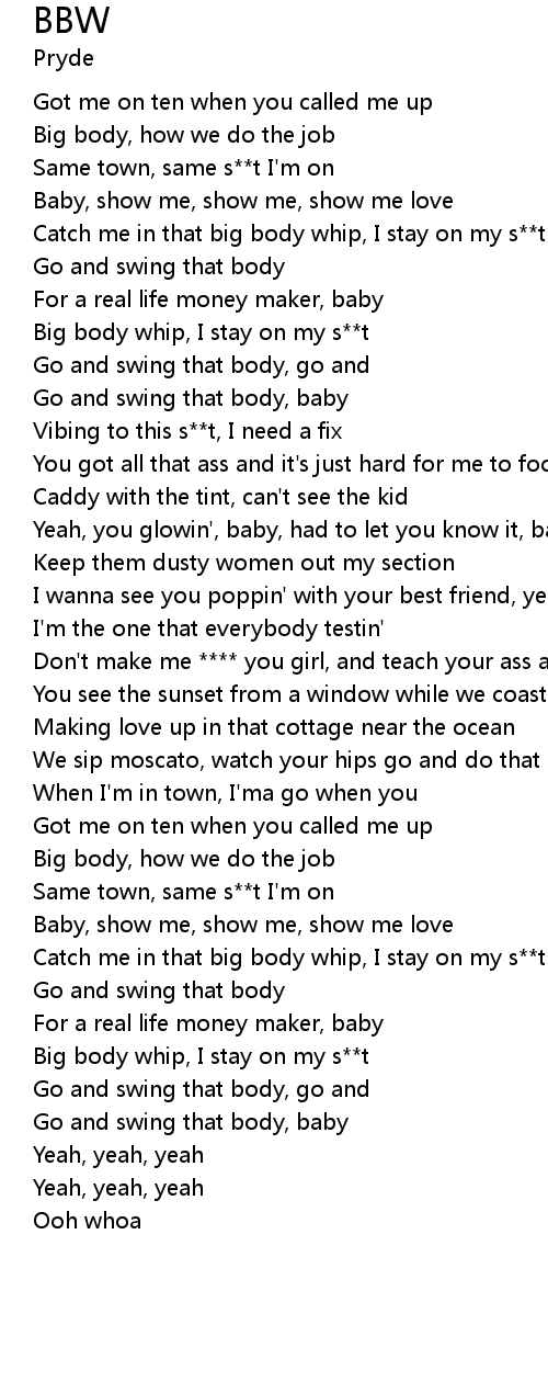 | [00:24.48] | Catch me in that big body whip, I stay on my s**t |