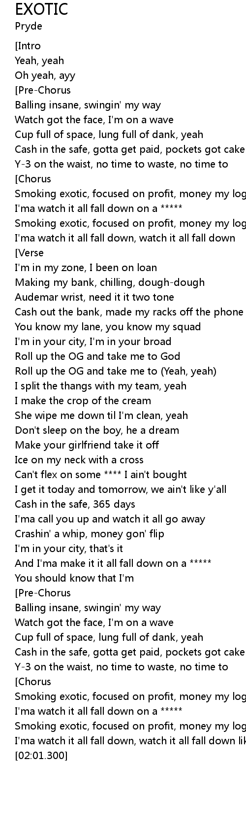 | [00:35.413] | I'ma watch it all fall down on a ***** |
