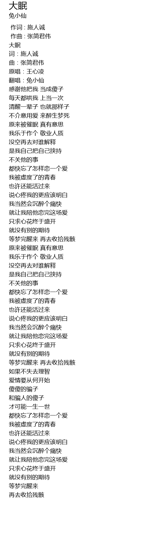 | [00:00.00] | 大眠 |