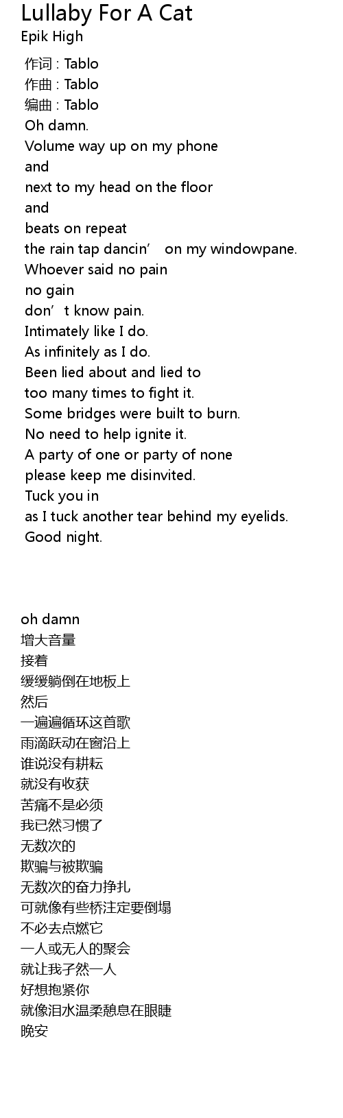 | [00:00.000] | 作词 : Tablo |